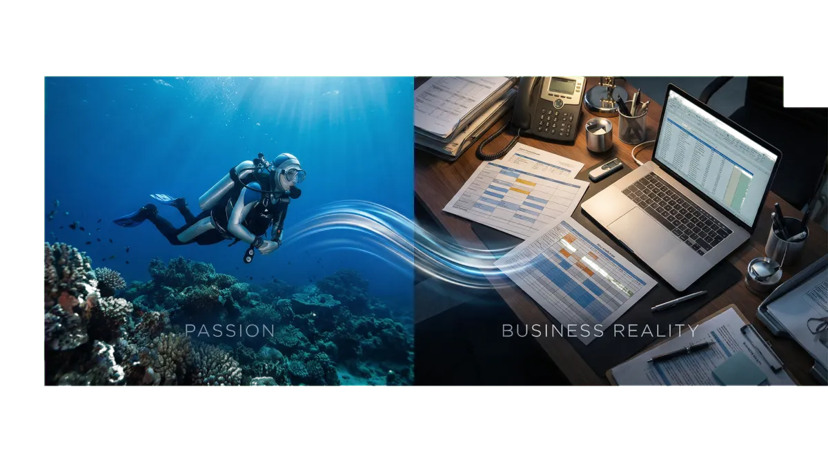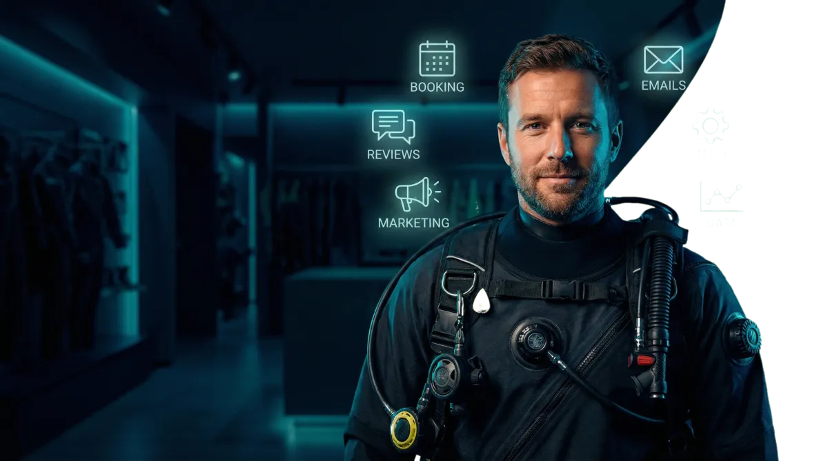 Tu pasión es el mundo submarino: la emoción del descubrimiento, la alegría de enseñar, la camaradería de la comunidad de buceadores. Pero la realidad de dirigir un centro de buceo a menudo se siente como si te tiraran en seis direcciones diferentes a la vez.